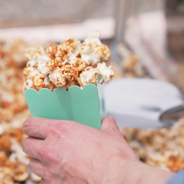 キャラメルポップコーンに対応したポップコーン機です。本体下部にウォーマー機能を搭載しているので、作り置きしても冷めずに提供できます。