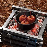 ダッチオーブンは1台で何役もこなせる万能鍋で「焼く、煮る、蒸す、炊く、揚げる、燻す」など各種色々な調理が可能です。「圧力鍋効果、無水鍋効果、オーブン効果」が期待でき、キャンプやアウトドアでも大変美味しい料理ができるイチ押しのレンタル品です。サイズは鍋の直径が26cm、内寸の深さが11cmです。