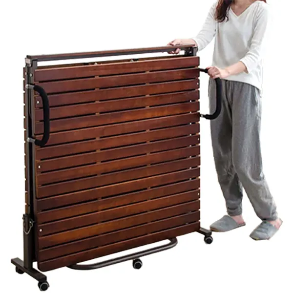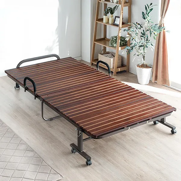 ワンタッチ折りたたみベッド 桐すのこベッド 床傷防止PUキャスター付