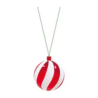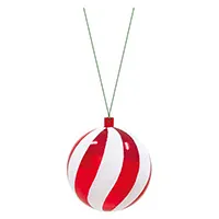 様々な形や質感の赤いオーナメントと、ポップな縞模様のオーナメントがふんだんに飾られており、とてもリズミカル。クリスマスの王道カラーを使った、楽しげで可愛らしい雰囲気が魅力です。