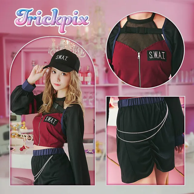 ファッショナブル&ポップで新感覚のコスチュームシリーズ「トリックピクス」。深みのあるネイビーとワインレッドの組み合わせが印象的なスワット。